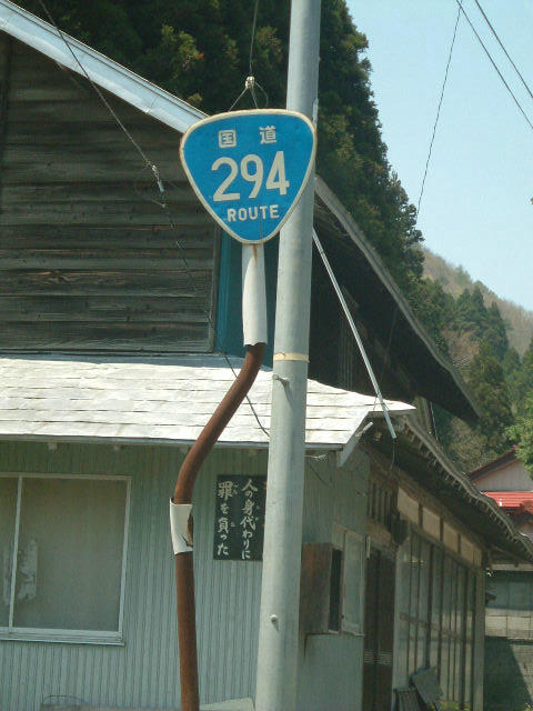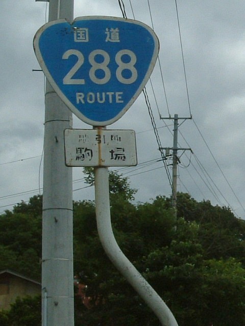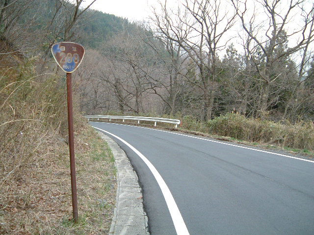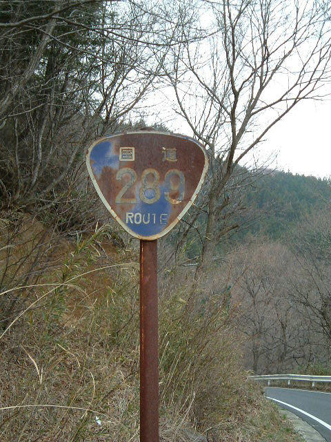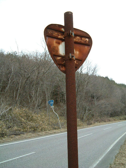 [R-288-1] 都路村 R288沿い(現道)にあった 古い標識です。 裏面もさびさびです。 反対車線には新しい標識が。 この他にも沿線に2〜3本は 確認しました。 |