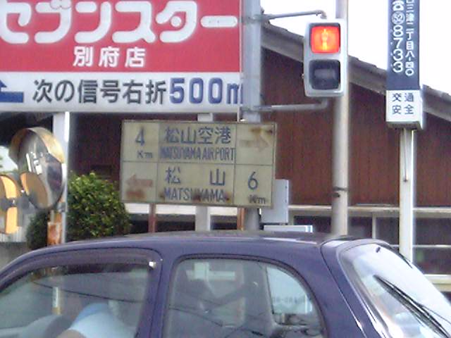 松山空港、そして松山中心部への 距離表示です。 交通量もそこそこありそうなこの場所、 しっかりと役目は果たしていそうですね。 次回はもう一つの白看をば。 |