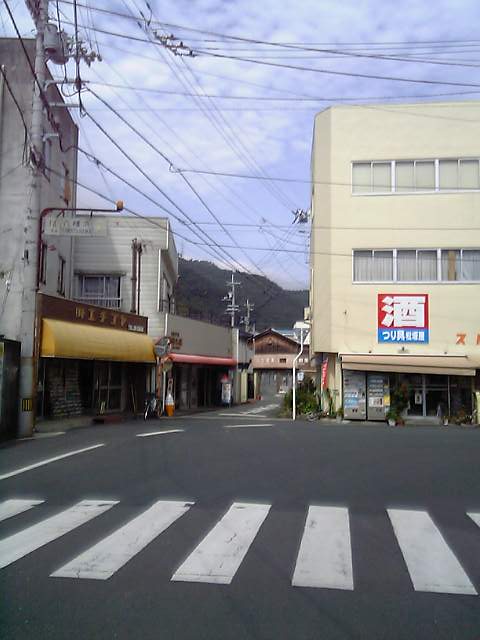 街の中の国道のクランクに白看が。
