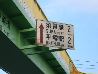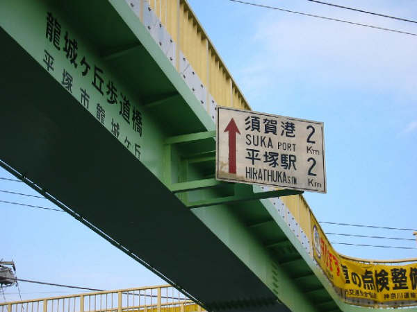 続いては西向きのこれです。 これまたキレイですねー、平塚市は白看を 大事にしているようです。 しかし、この白看には一箇所”変”なところが あります。さて、どこでしょう? (答えはCtrlキーを押しながらAを押してください(^^;) 答え:「平塚駅」のローマ字併記が 「HIRATSUKA」ではなく「HIRATHUKA」となってます。 ひらてゅか?(笑) |