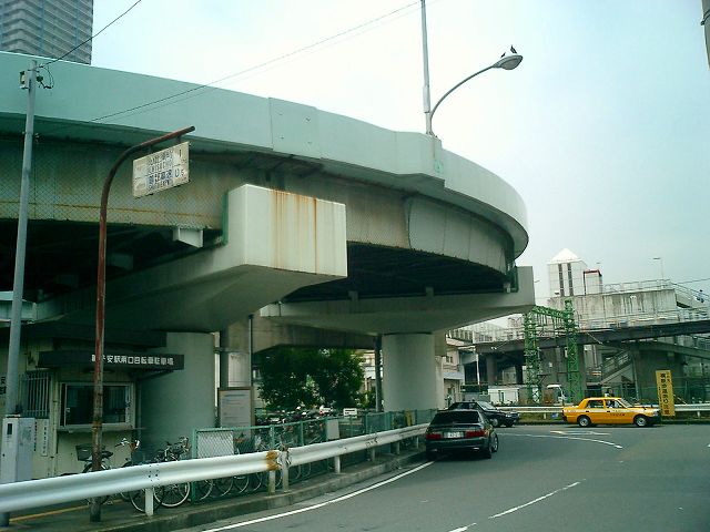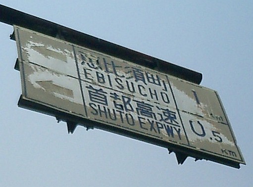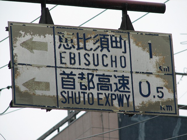 白看アップ画像。 表面は荒れて色が落ちてしまったそれには 「首都高速」の文字が。 昭和40年代初頭の設置と思われますが、 高度成長真っ只中のこの時期には 都内いたるところにこのような 白看が設置されていたのでしょうね・・・ |