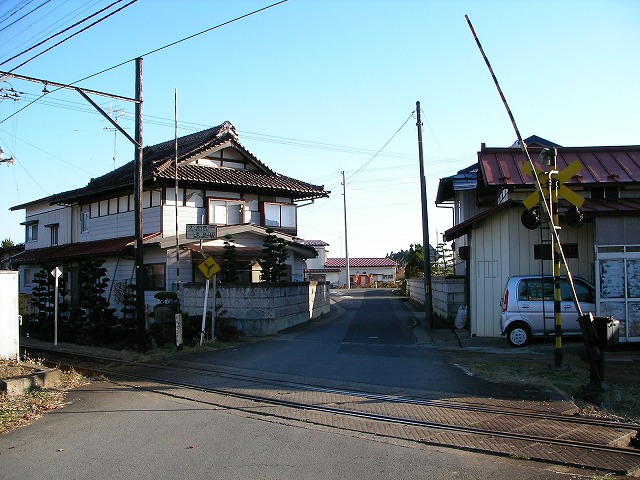 杉橋駅脇の踏み切りに佇む白看。