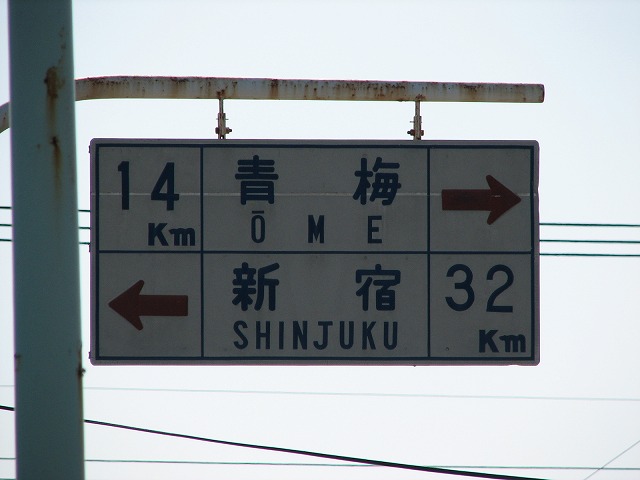 前回の白看と上下が入れ替わっただけ、 みたいな白看。 付近に3本もある白看の共通の特徴として 標識の上から1/4のところに入っている横のライン。 これいったい何なんだ?? さらにさっきのより場所的には新宿寄りだと 思われるこっちのほうが新宿までの距離が 長いのはなぜ?? と、まあ疑問点は浮かびますがこんなに近くに3本もあるとは なんと素晴らしい場所よ、武蔵村山市! でも地図見るとちょっと番地大杉やしませんかねぇ??(^_^ 地図酔いしそう・・・; |