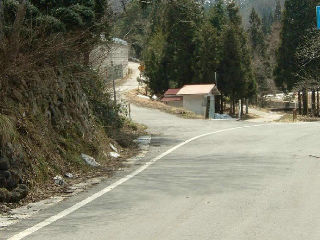 山形県上山市、金山峠の麓の旧県道交差点。