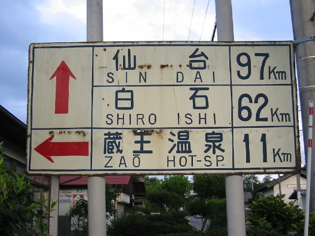 TWさんより頂きました。 山形県上山市内の蔵王へ向かう県道の 分岐点になんとも味のある白看を発見! |