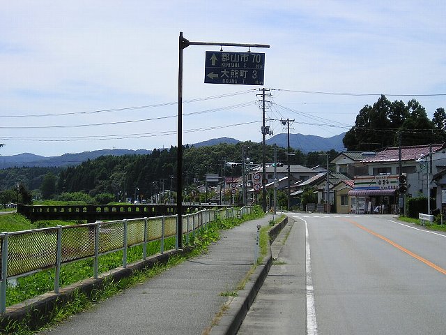 旧青看にはないローマ字併記がある。 ということは普通の青看?でも無い。 この「Km」のフォントといい、市町村名の 省略文字(C.やT.)といい・・・これは 以前にも他の方からご投稿頂いたことが ある「青い白看」ではないですか! こんなものが福島県内にあるとは・・・ これは貴重な感じです(^-^) スバラシイ! |