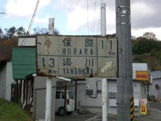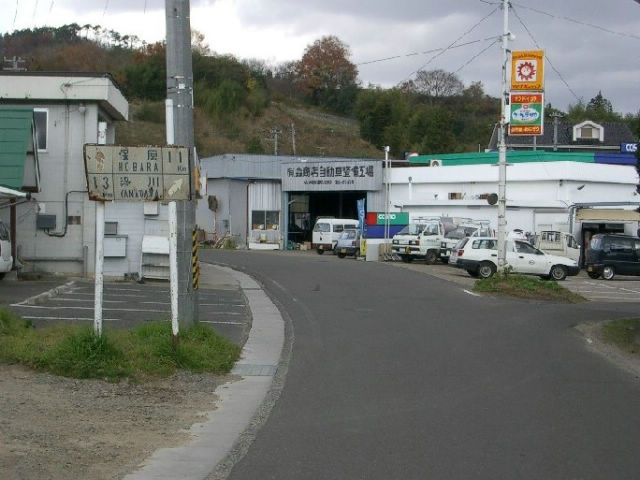 三度、福島在住しょくさんから頂きました。 さらに月舘町の旧R349でも白看が見つかりました。 Bタイプでも路面設置タイプです。 裏道のような雰囲気に曇り空、白看が一番映える (と思っている)情景です。 |