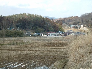 途中谷田川にかかる橋のたもとから振り返っての風景です。
