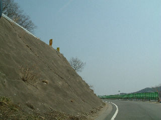 この柵の外側に道を作ってセンターライン付き完全2車線に拡幅するのでしょう。