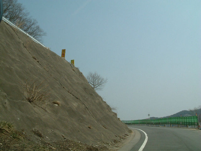 右側の路肩には工事の柵が付いています。