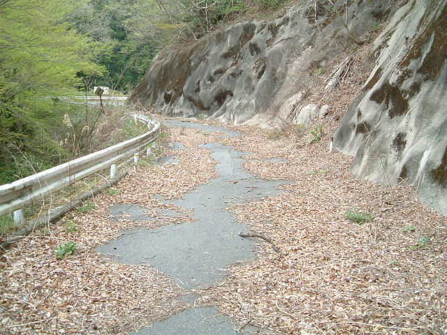 路面には旧道にはお決まりの植物の葉や枝が堆積していました。