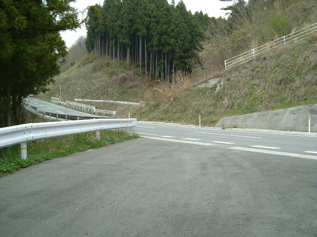 丁度上の写真のガードレールの場所から林道が分岐しています。