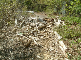 どこから運ばれてきたのか道路一杯に木材が