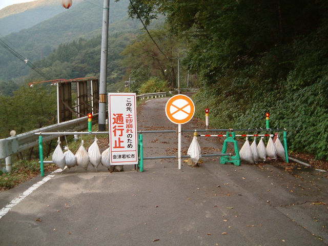 そして崩落地点を過ぎるとすぐに反対側の通行止め地点へ到着です。