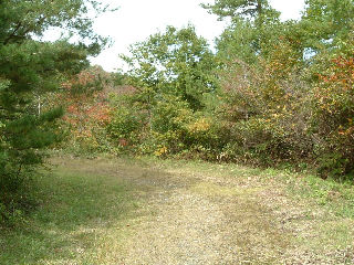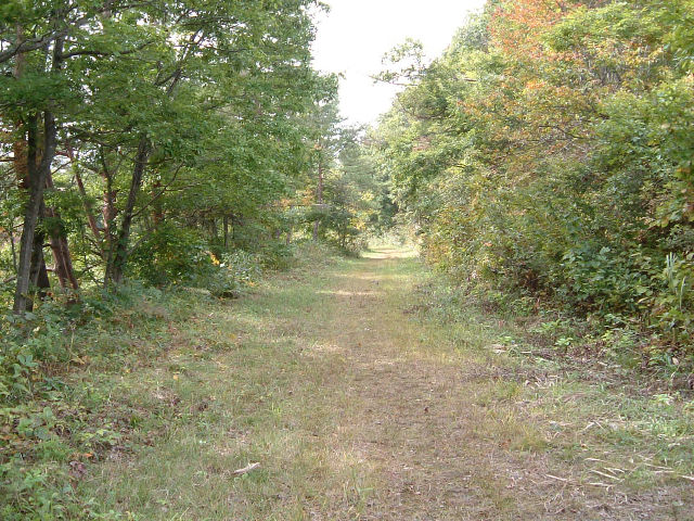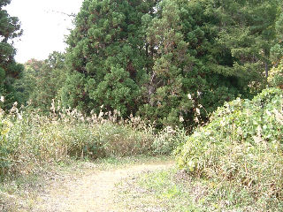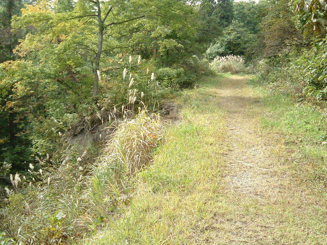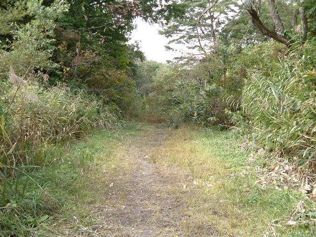 未舗装路だった路面が露出し、落ち葉や勢力を増している植物を