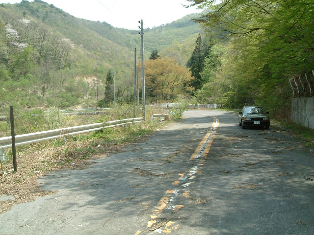 旧道は進行方向を180度かえるタイトなカーブ(と言っても幹線国道のレベルで)