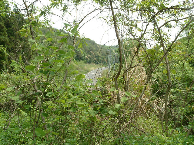 三ッ森トンネル真上から現道を見ます。