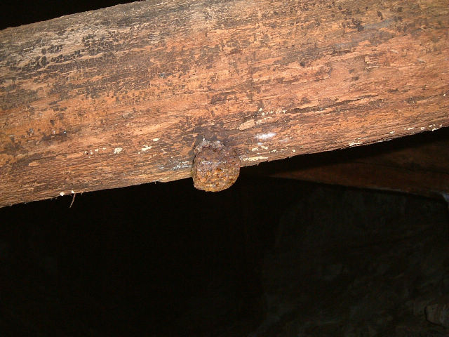 支保工には鉄製と思われるボルトが使われており、